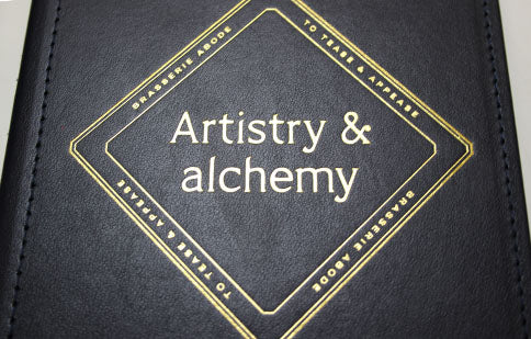 Para que su logotipo se imprima en una cubierta, haremos una placa de latón. La placa de latón se coloca a mano en la imprenta de papel caliente, utilizando una cinta de unión especial. Una vez que la placa se establece y se calienta por completo, el proceso puede comenzar. El logotipo está alineado con el espacio correcto según sea necesario y la lámina seleccionada cargada en la máquina, esta lámina se pasa y se presiona sobre la cubierta que se transfiere dejando su marca en las cubiertas en un acabado metálico.