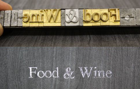 Puede agregar texto a sus cubiertas usando una de nuestras fuentes estándar. Con una selección de cuatro fuentes, puede hacer que las cubiertas se adapten a sus requisitos. Este estilo de impresión se realiza con letras individuales, que están seleccionadas para compensar la redacción que ha solicitado. Una vez que se compone la redacción, esto se coloca en bandejas y se coloca en la imprenta para calentar. Una vez que las letras se calientan, el proceso se calcula el posicionamiento y el proceso de impresión de aluminio puede comenzar. La lámina se carga en la máquina y se pasa debajo de las letras. Luego se empuja contra la cubierta, dejando una transferencia de aluminio metálico en su artículo con la redacción deseada.
